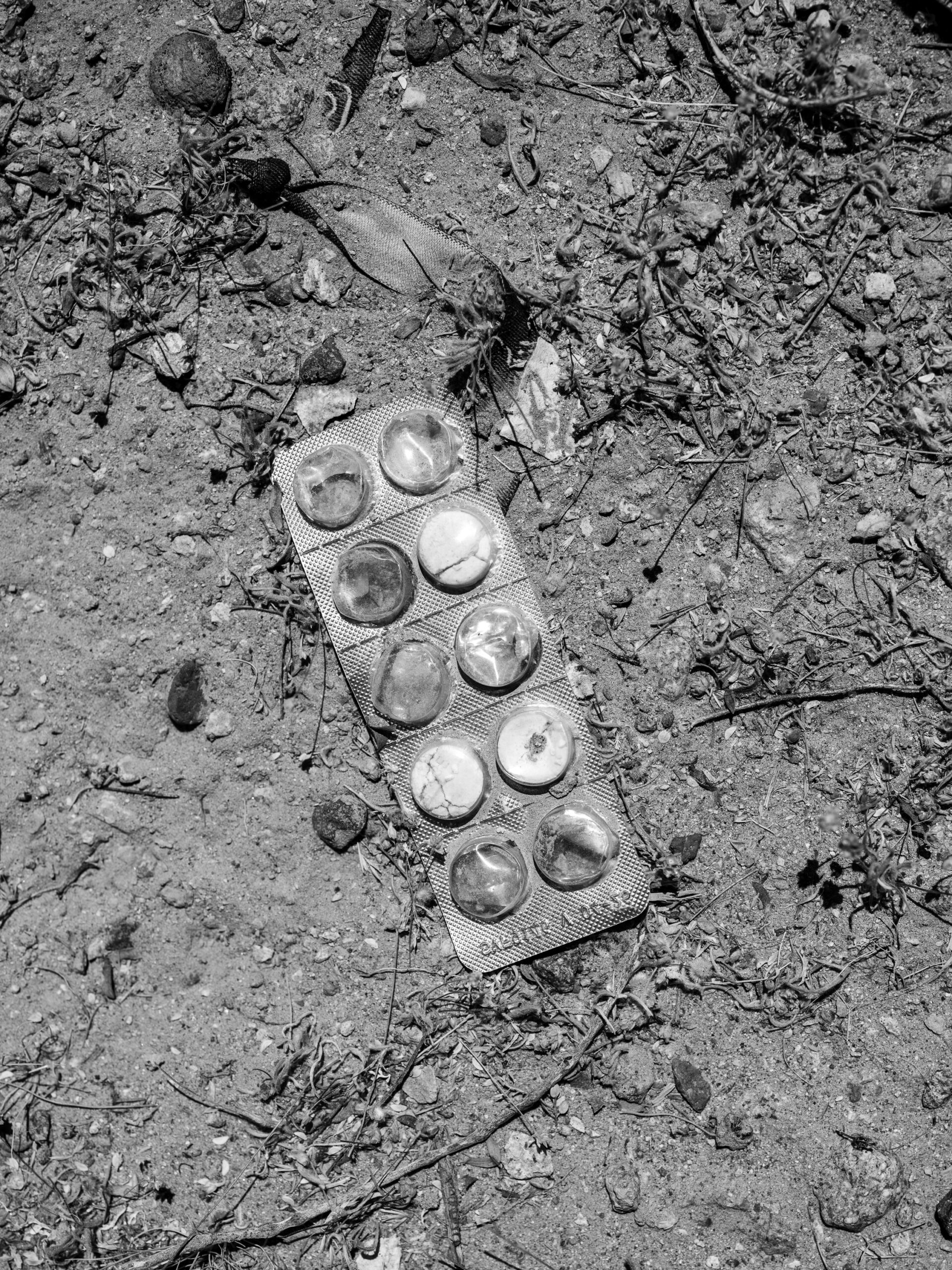 Medication left behind at a CBP migrant holding camp near the Sonoyta border crossing. Image: Roberto (Bear) Guerra/HCN