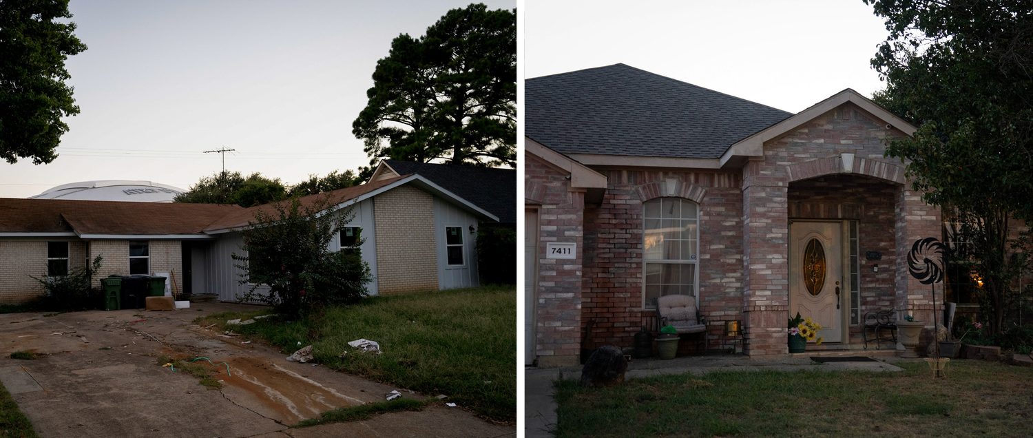 A la derecha: la casa de huéspedes en la calle 1210 Woodbrook, en Arlington, TX, donde Angelique Estes señala que fue retenida en contra de su voluntad. A la izquierda: la casa de huéspedes con domicilio en 7411 Lake Whitney, en Arlington, donde Steven “Kelly” Pankratz falleció el 12 de enero de 2024. Una autopsia reveló una combinación de medicamentos psicofármacos que nunca le fueron recetados. Ambas casas eran propiedad de y operadas por Regla Becquer, quien enfrenta multiples cargos penales, incluyendo cargos por asesinato. Image: DANIELLE VILLASANA