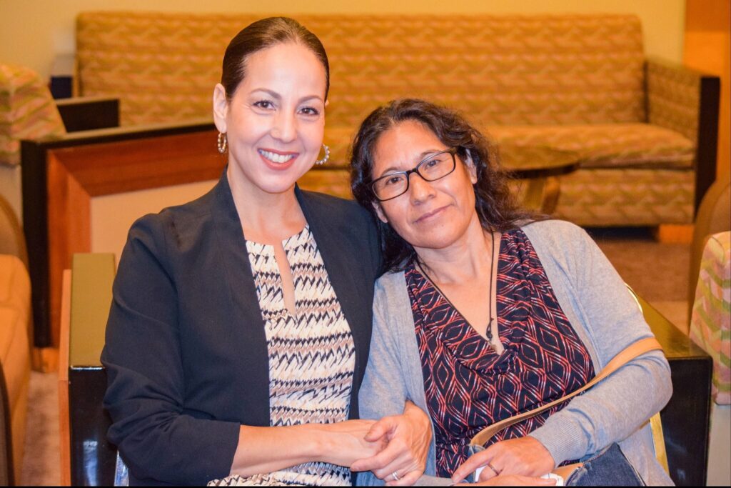 La abogada de Los Ángeles Gina Amato Lough (izquierda) y su clienta María Gutiérrez Aragón, quien fue defraudada por miles de dólares durante una década. Cortesía.