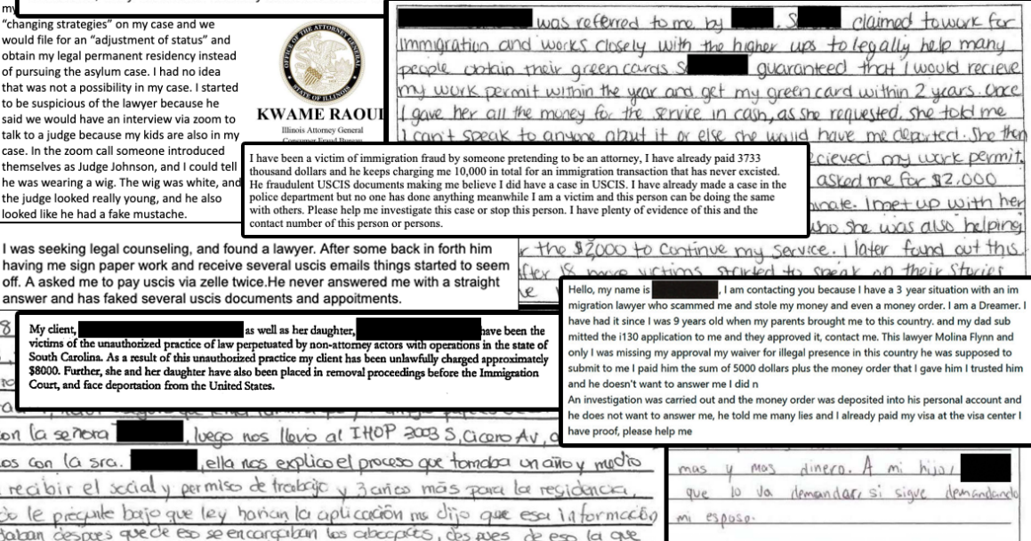 Desde 2015, en Illinois docenas de personas han presentado denuncias ante el fiscal general del estado alegando haber sido defraudadas en casos de inmigración, con pérdidas que ascienden a casi $200,000, según los registros obtenidos por el Weekly y Type Investigations de la oficina del fiscal general.
